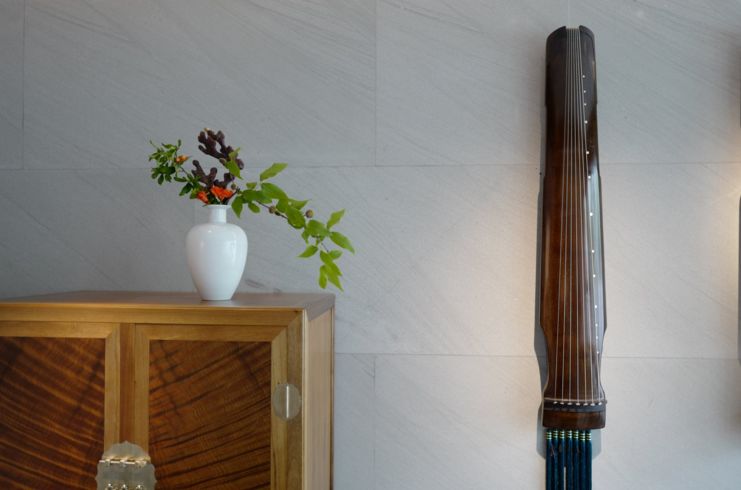 书房中抚琴,也是文人的一种雅好。