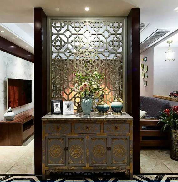 新式玄关不仅可以古色古香,还可以具有很强的实用性。