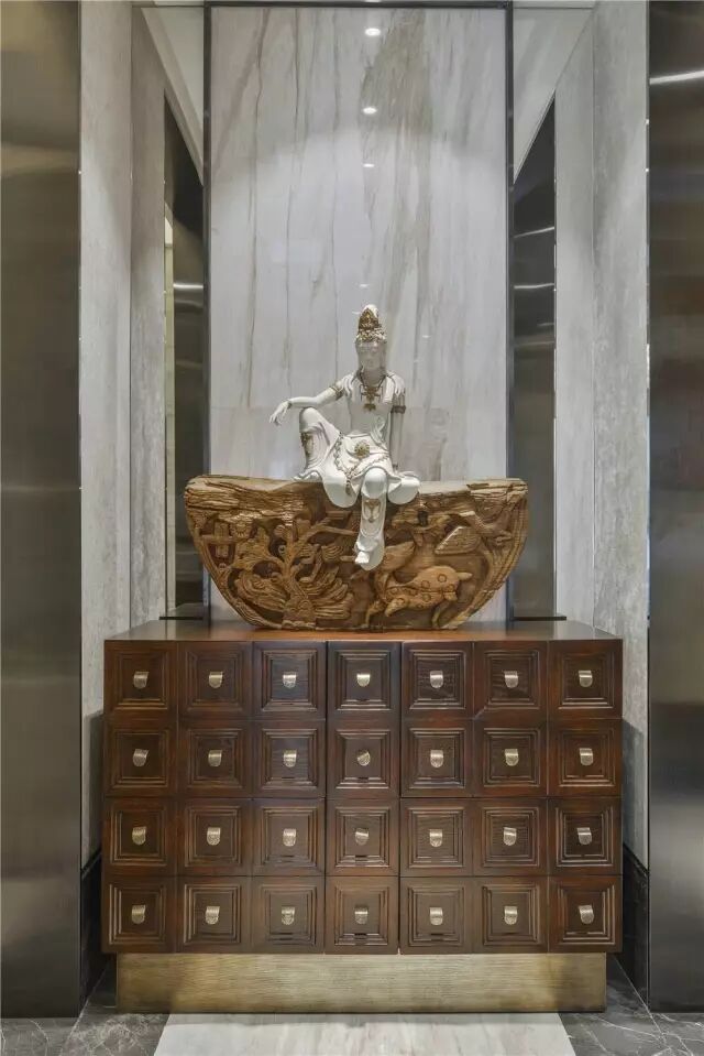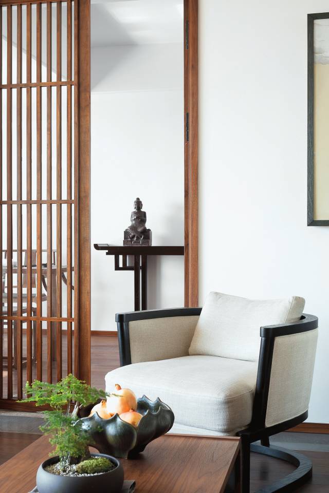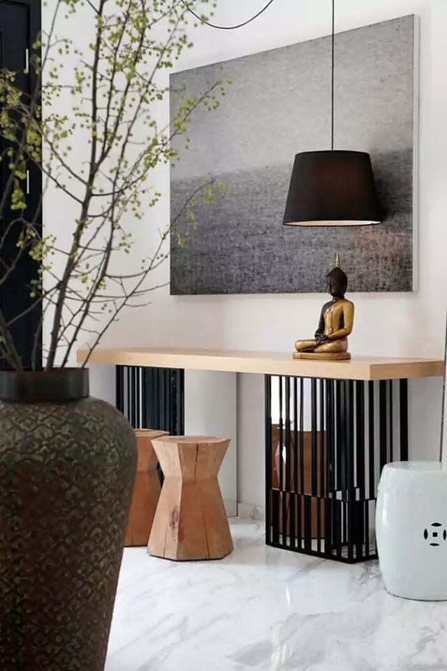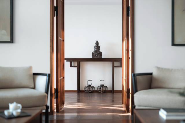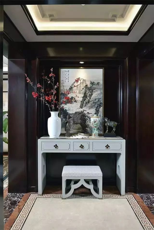 中国传统文化重视礼仪,讲究含蓄内敛,有一种“藏”的精神。体现在住宅文化上,玄关就是一个生动写照,在门前形成了一个过渡性的空间,为来客指引方向,给主人一种领域感。在室内和室外的交界处,简单自然地成为一块缓冲之地。