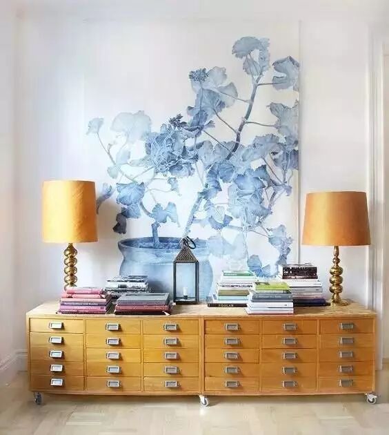 即以低形矮台来限定空间,以低柜式成型家具的形式做隔断体,既可储放物品,又起到划分空间的功能。