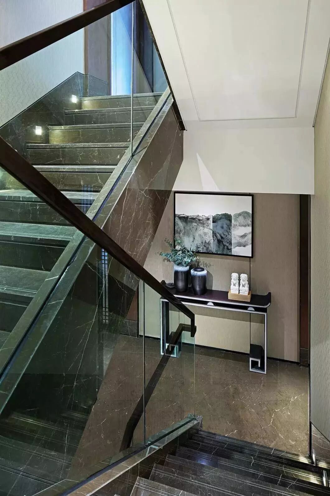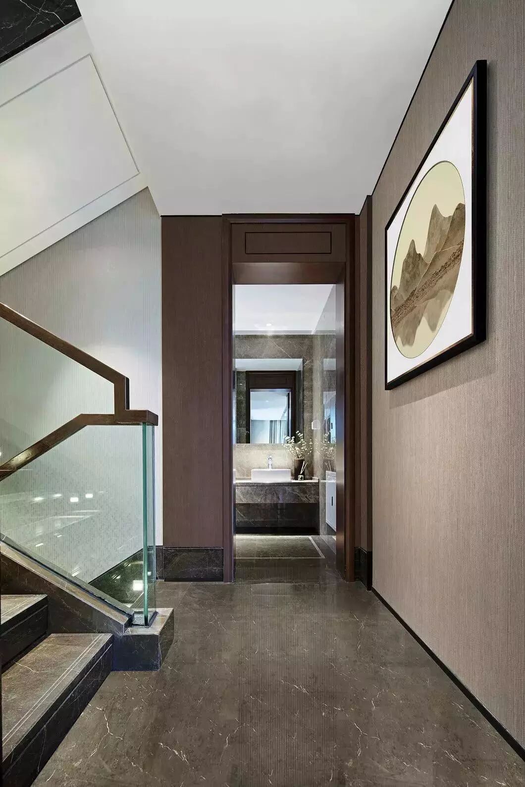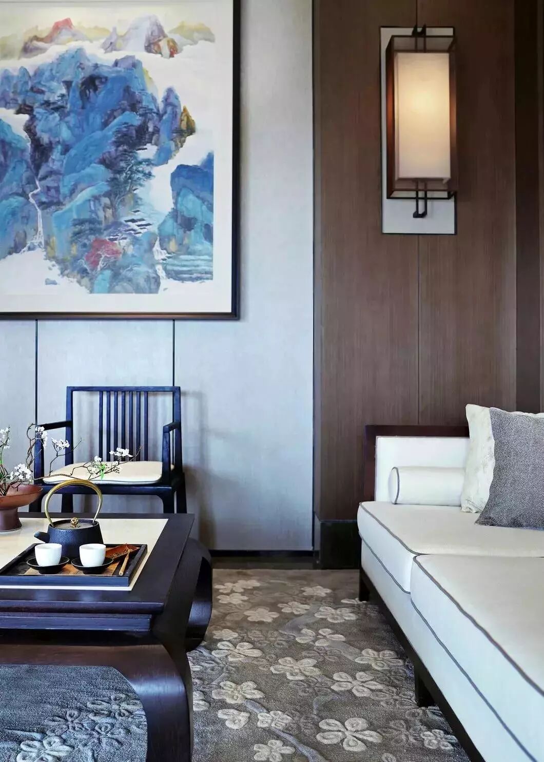 将传统中式的提炼和升华,也是对传统中式的尊重,设计师将东方美学用现代手法巧妙应用到空间中,把复杂的空间元素简练,给人一种沁润、意墨之境。