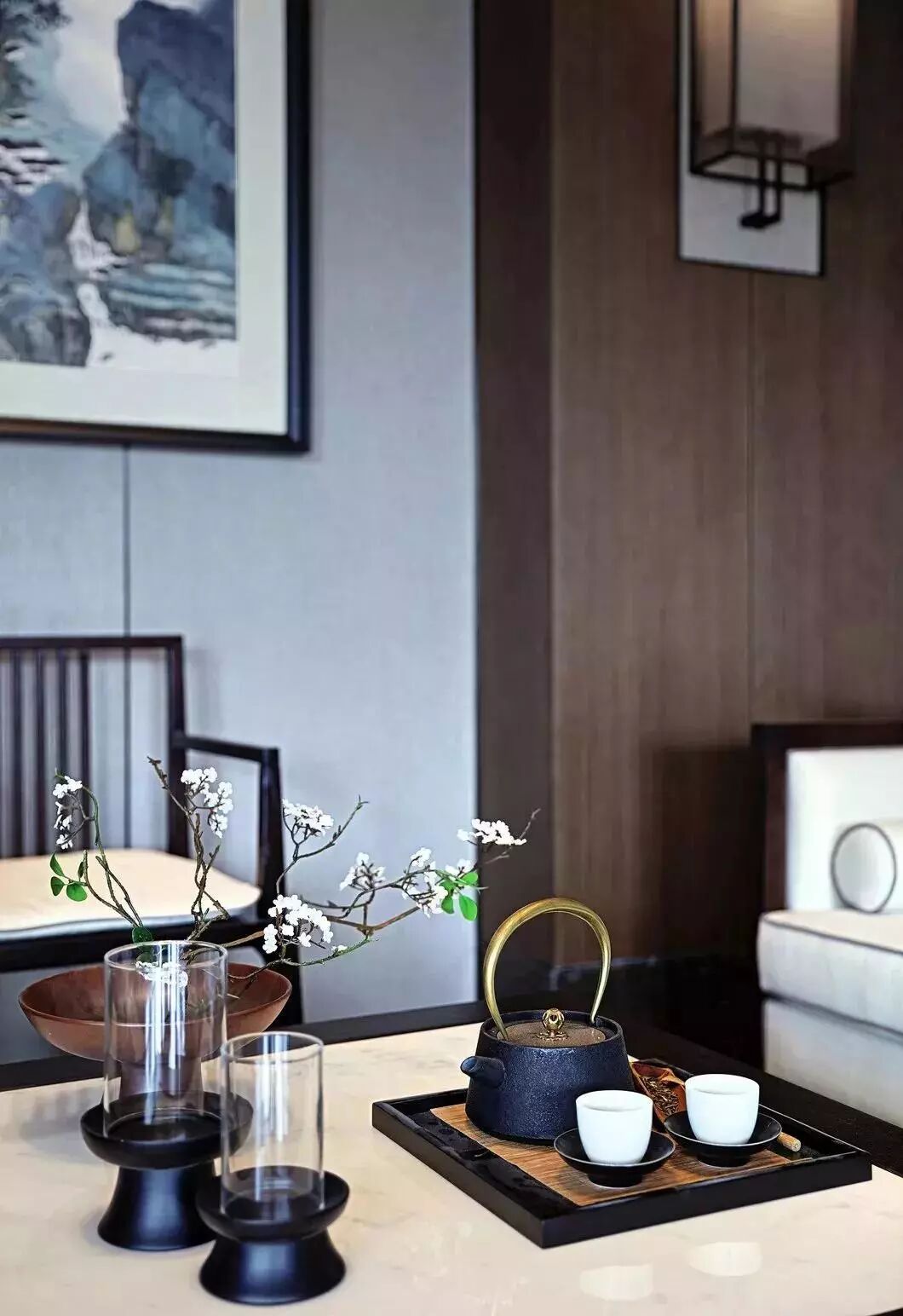 自然暗香的木纹,香槟高级灰的皮质,深邃高贵的灰蓝,在这里感受一茶一世界,一壶一人生东方优雅生活的高贵细腻。