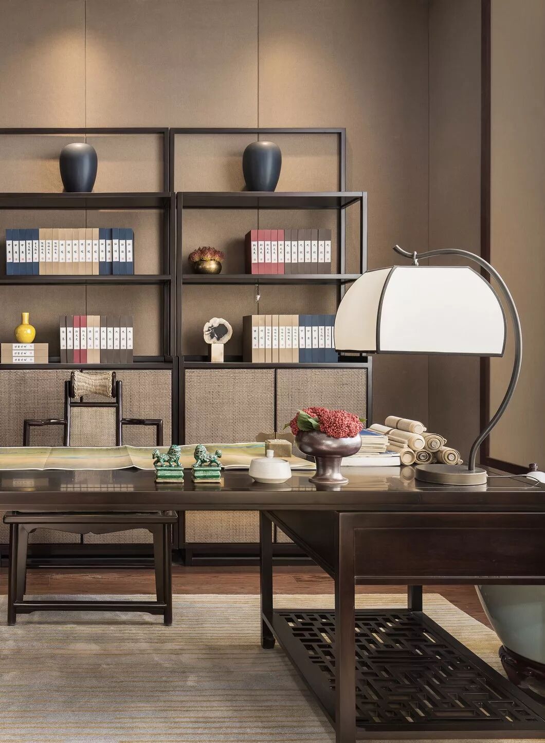 书房秉承了传统古典风格的典雅,家具形态典重自然,以更加儒雅、独特的姿态诠释着中国之美。