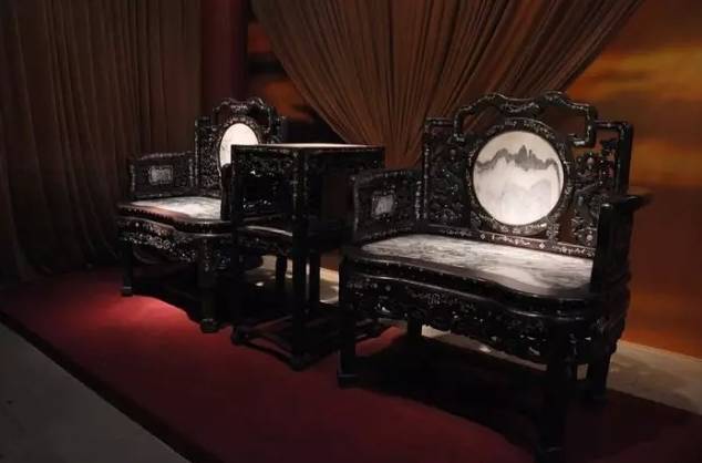 清紫檀木嵌宝镶大理石桌椅