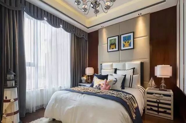 次卧的布局较为简洁,深灰色的窗帘,呈现出一种大气感,同时各个家具之间的巧妙布局及舒适造型,也让人晚上更易安然如梦