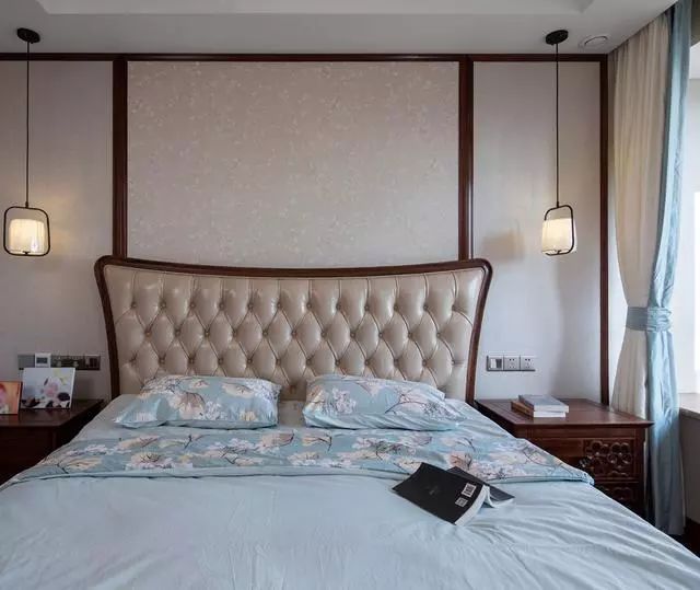 次卧的装修相对简洁的多,但床头两侧的下垂式吊灯很吸睛,造型别致又大方。