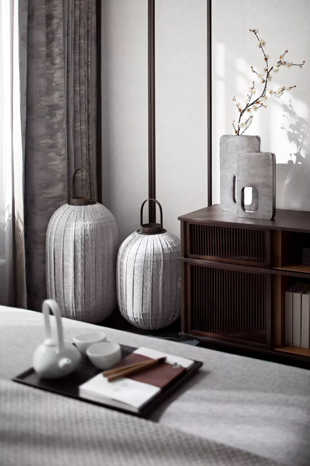 于是,新中式需要兼具的古典和现代,在灰色中得到了完美地发挥空间。用灰色作为新中式风格的底色,可以称得上是贯通古今,珠联璧合。