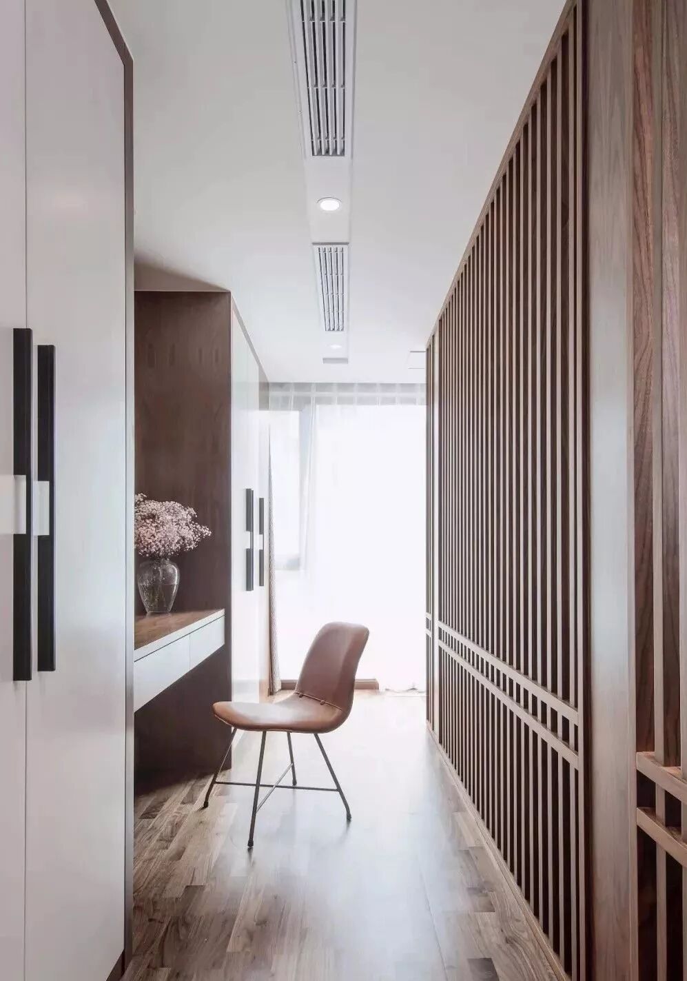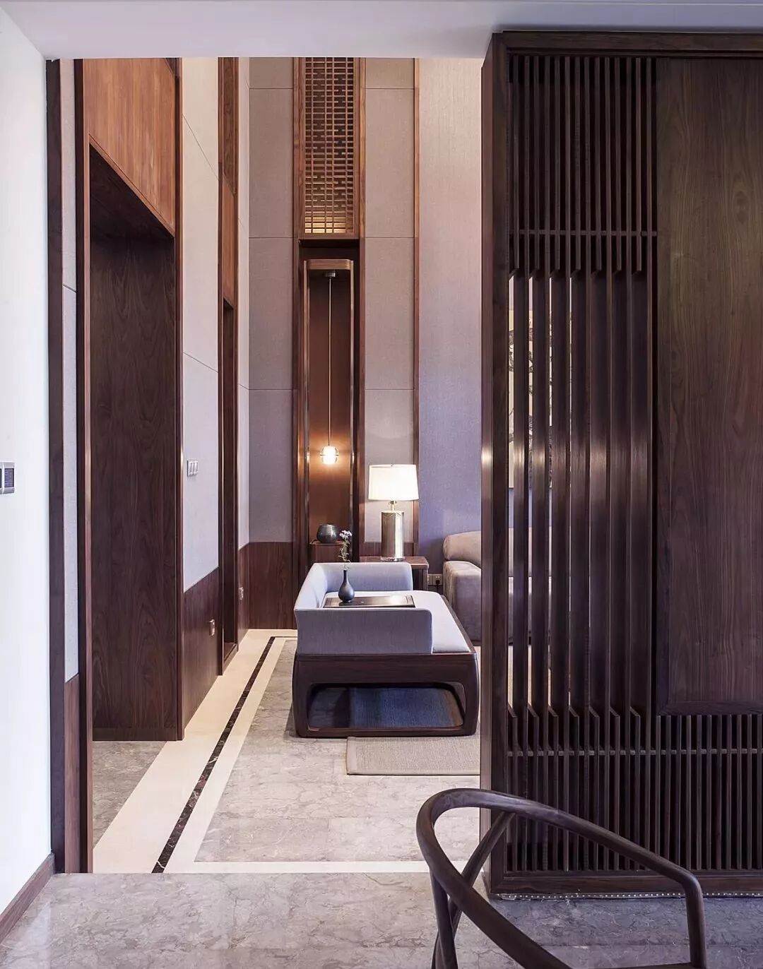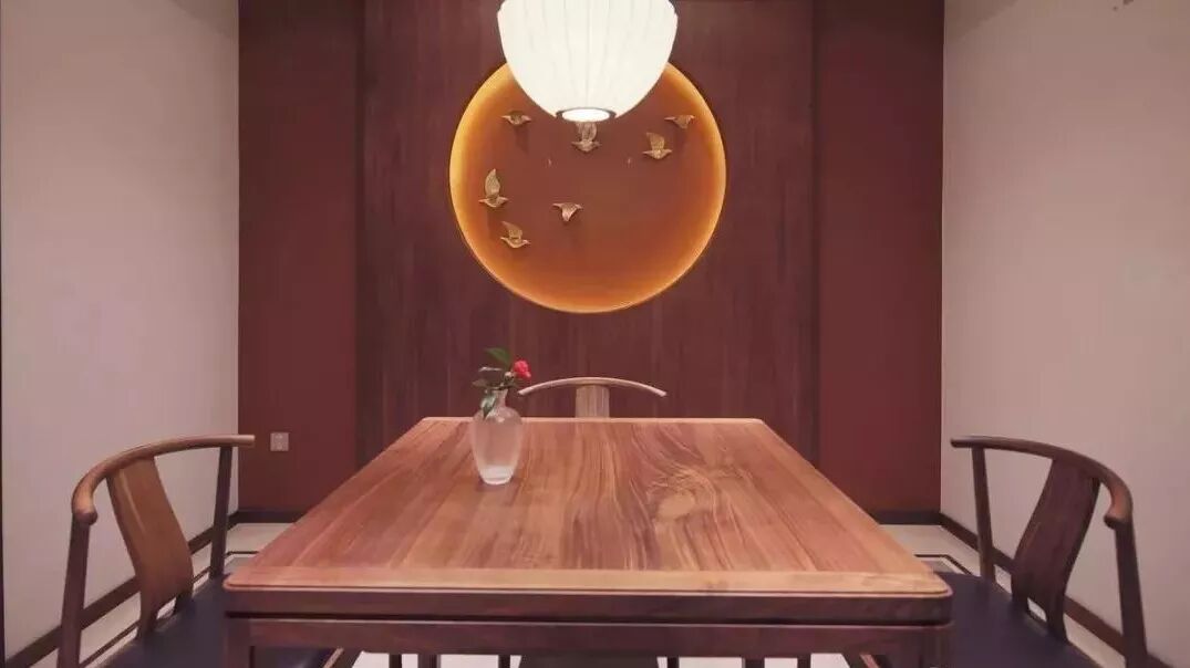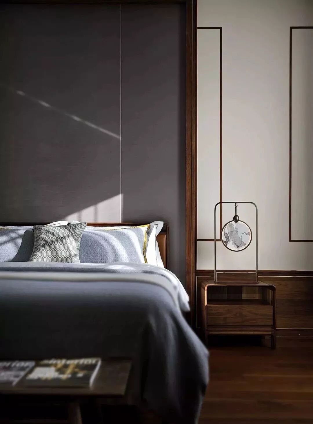 胡桃木色浓淡适宜,不像枫木色轻浮,也不像红木色老气横秋。这也是新中式风格的「新」字所在。