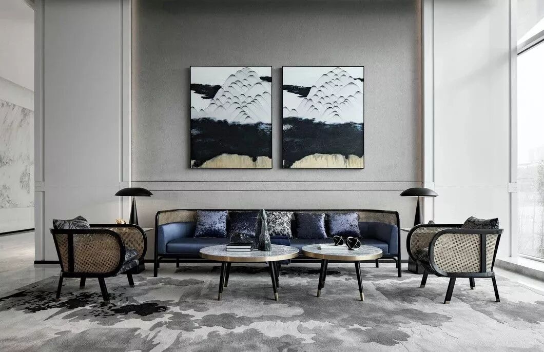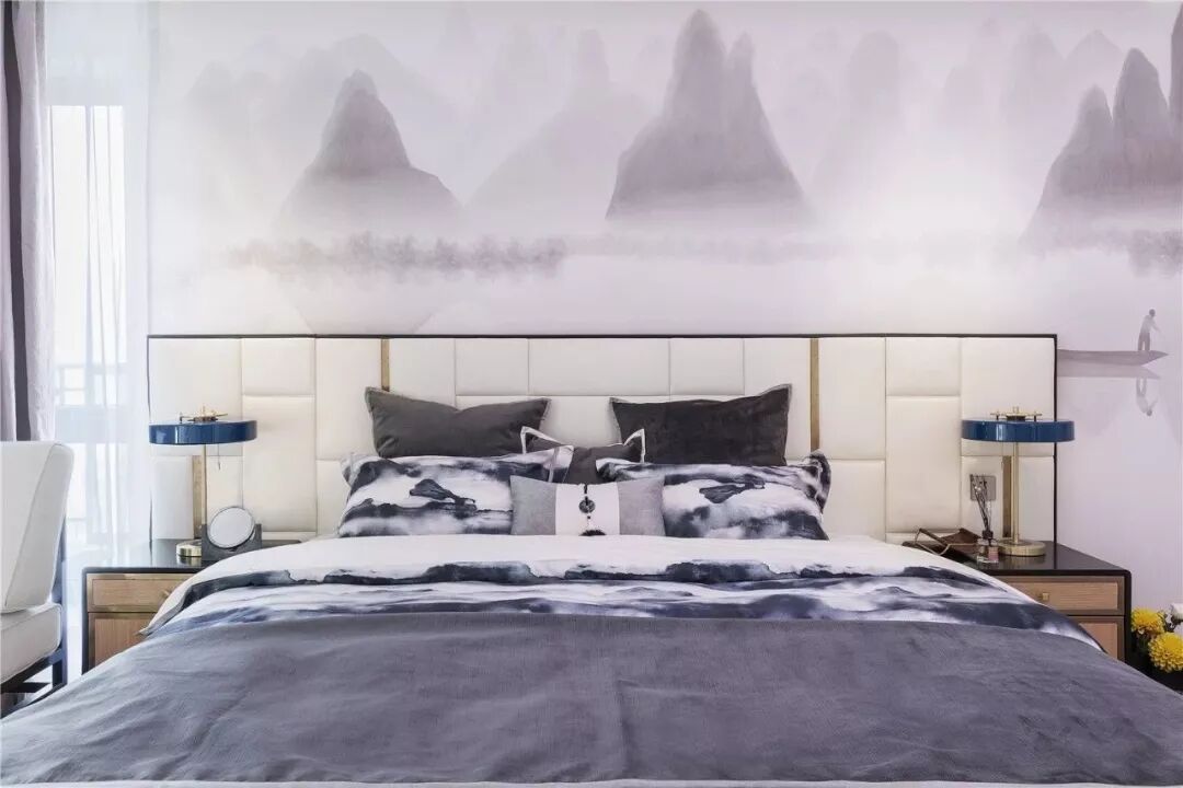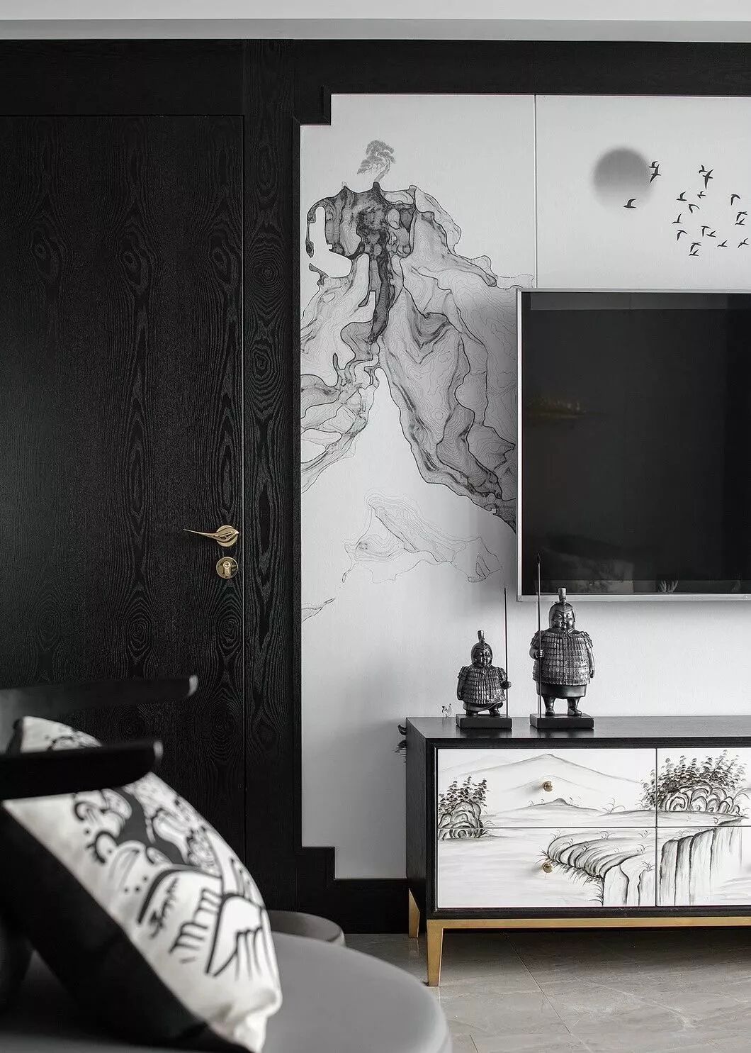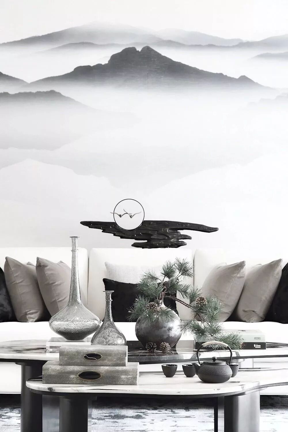 新中式风格的软装技巧,在于与整体风格的统一。其中,水墨和留白的软装技巧是体现「新中式」风骨的不二之选。在有限的空间里,渲染出无限的意境。