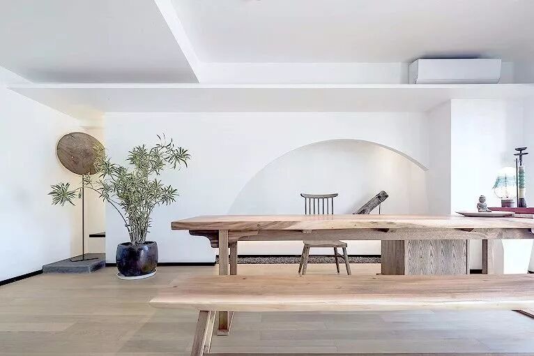 中国人对「天圆地方」的执着是文化中的显性基因。巧妙的是,月洞门和中式月窗在居所内的造景和移步换景,同样起着至关重要的用。这样一来,小小的居住面积中,自有一番变幻无穷的天地。
