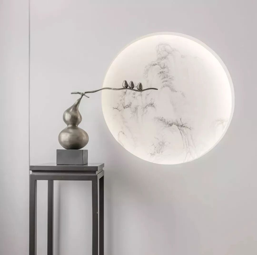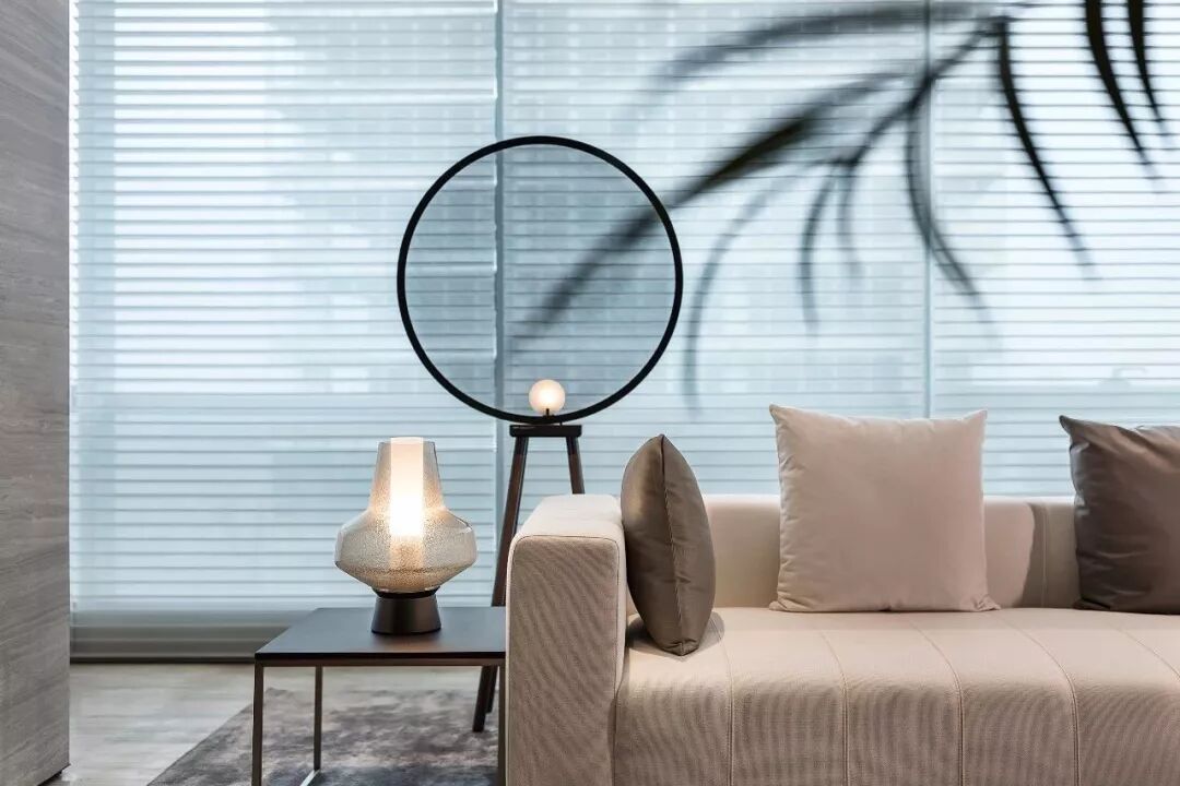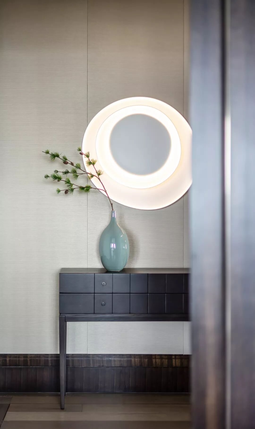 于是,月洞门,中式月窗,圆形装饰物在新中式居所中无处不在。圆形线条与建筑中大部分直线和方形线条相嵌相应,相对相照。