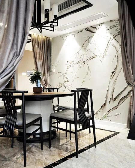 走文人路线的中国风装修,往往以古代文人元素充满这房间,大多都南方温婉路线,但是过重的文人气息又会变得过于阴柔。好在,现代简洁线条和明亮色彩的融入给江南水韵增加了更多的明亮,活力。