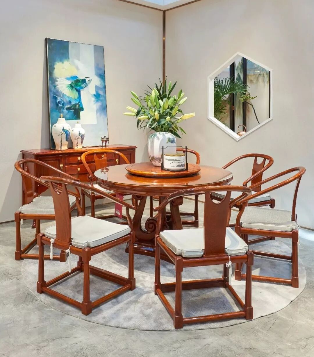 自然轻松的用餐环境对食欲有良好的促进作用,而红木难能可贵的高端品质,在款待宾客亲朋时,也会让您更有面子!
