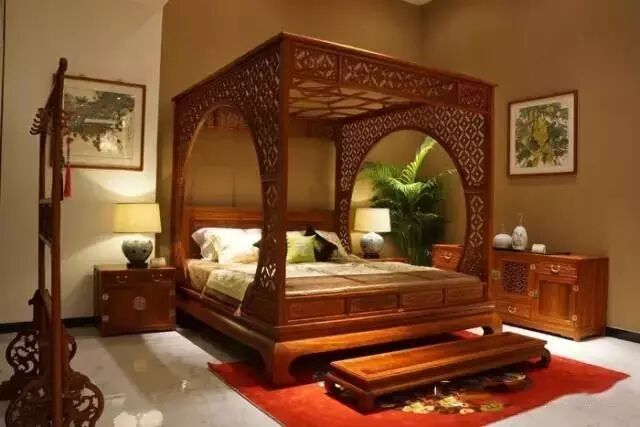 古人几乎把所有象征吉祥、长寿和幸福祈愿的符号都附于床榻和卧室里了。我们常见的卧室古典家具有雕龙刻凤的架子床、用木精良的顶箱柜外,还有雅致韵味的梳妆台、五屉柜和屏风类等等古典家具。