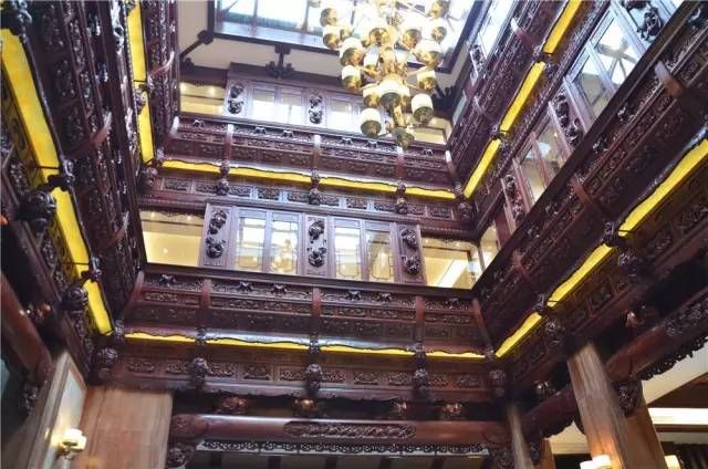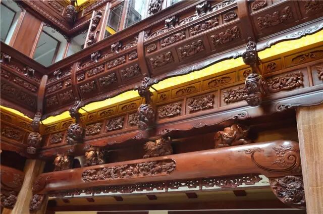 中堂是天井格局,每一楼层围栏体现的都是工匠精神,置入中堂,抬眼望去,令人震慑!不禁让人怀疑这真的是私人住宅吗?