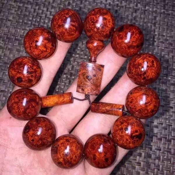 这就有人会问了,既然手串自己会包浆,那么是不是就不用盘玩了!可以啊!完全随个人意愿,不过对喜欢的人来说,盘玩也是紫檀的乐趣之一,不让他盘是基本不可能的。盘玩作用一是加快包浆的速度,二是可以让包浆更为均匀。