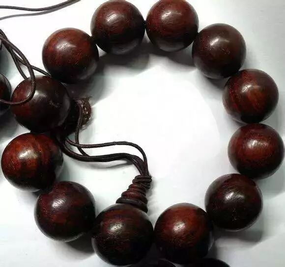 网上有很多鉴别方法,什么原木比较、白纸划线、棕眼、纹理、油性、密度等等,我是不相信你真能鉴别出来。不信,请看下图,这是我自己买的一串血檀。老板比较实在,看我懂行,就直接告诉我是血檀了。这串珠子的重量是70多克,当然珠子肯定比2.0要大,如果我不说的话,你只通过图片能看出来?