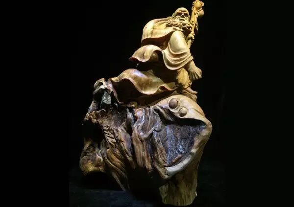 其造型生动稳重,布局合理,结构优美,既有准确的解剖原理,又有生动的夸张变形。刀法上既有粗犷有力的斧劈刀凿感,又有浑圆细腻娴熟的刻画。人物形神兼备、衣纹流畅、富有不同的质感。产品色泽古朴稳重,具有“古董”之美。