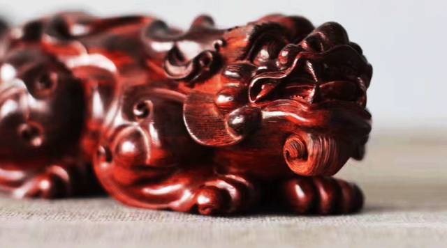 小叶紫檀工艺摆件通常用一些形状不规整的木材雕刻而成,因为小叶紫檀寸木寸金,每一块边角料都要充分利用。