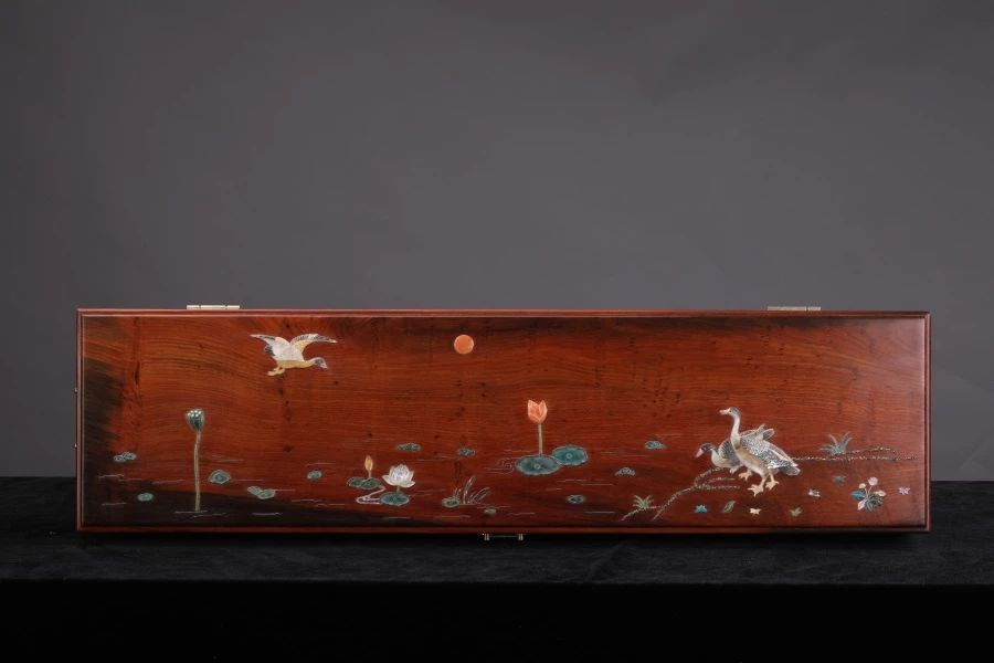 大红酸枝百宝嵌艳阳天独板画盒