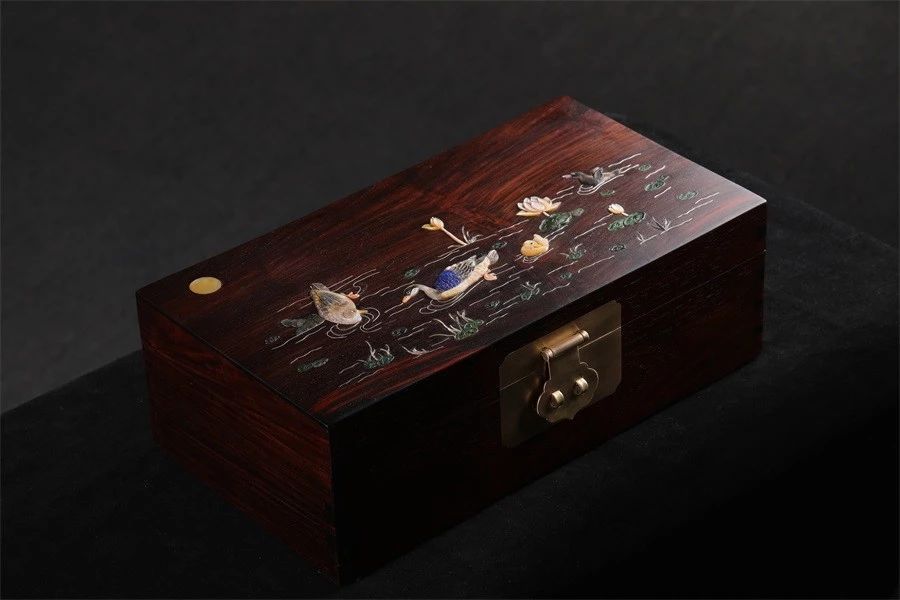 以上几种画盒、长方盒、笔筒都是案上文玩,搭配百宝嵌看起来更加灵动自然,而且百宝嵌的珍宝与贵重红木搭配,好上加好,使得升值率更高。