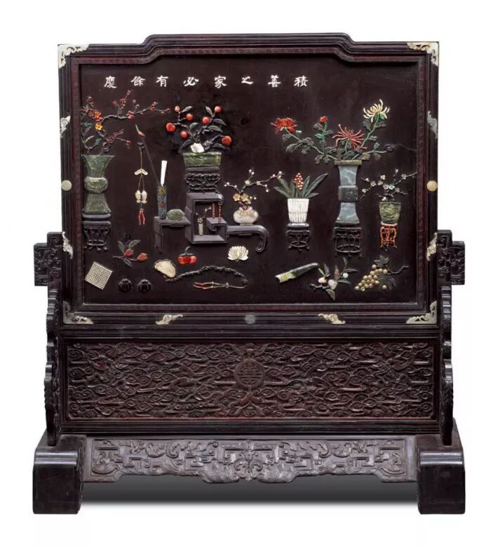 源于漆家具最流行的作法,如果在一件家具上 嵌入用多种名贵材料如玉、石、牙、角、玛瑙、琥珀等制成的装饰物,则叫“百宝嵌”。
