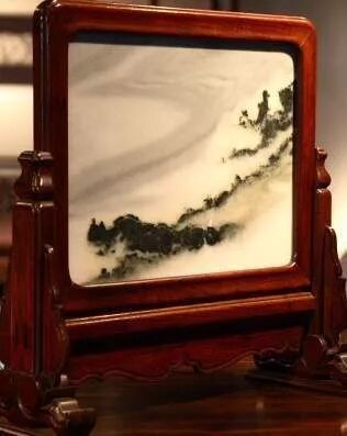 在家具上嵌有花纹的大理石作为面板,是明清朝代家具常用的装饰手法。由于大理石有美丽而又变化无穷的纹理,在似与不似的意象中情趣横生。硬木家具上选用的大理石一般均为上品。大理石以白如白玉、黑如墨者为贵;微白带青,微黑带灰者为下品,白质纹络中似山水者,叫春山;白质绿章者,叫夏山;白质黄纹叫秋山;其中以石纹美妙而变化的春山、夏山为最好,秋山次之。还有用如朝霞一般红润的紅色玛瑙石,碎花藕粉色的云石,花纹如玛瑙的土玛瑙石,显现山水、日月、人物形象的水石等。