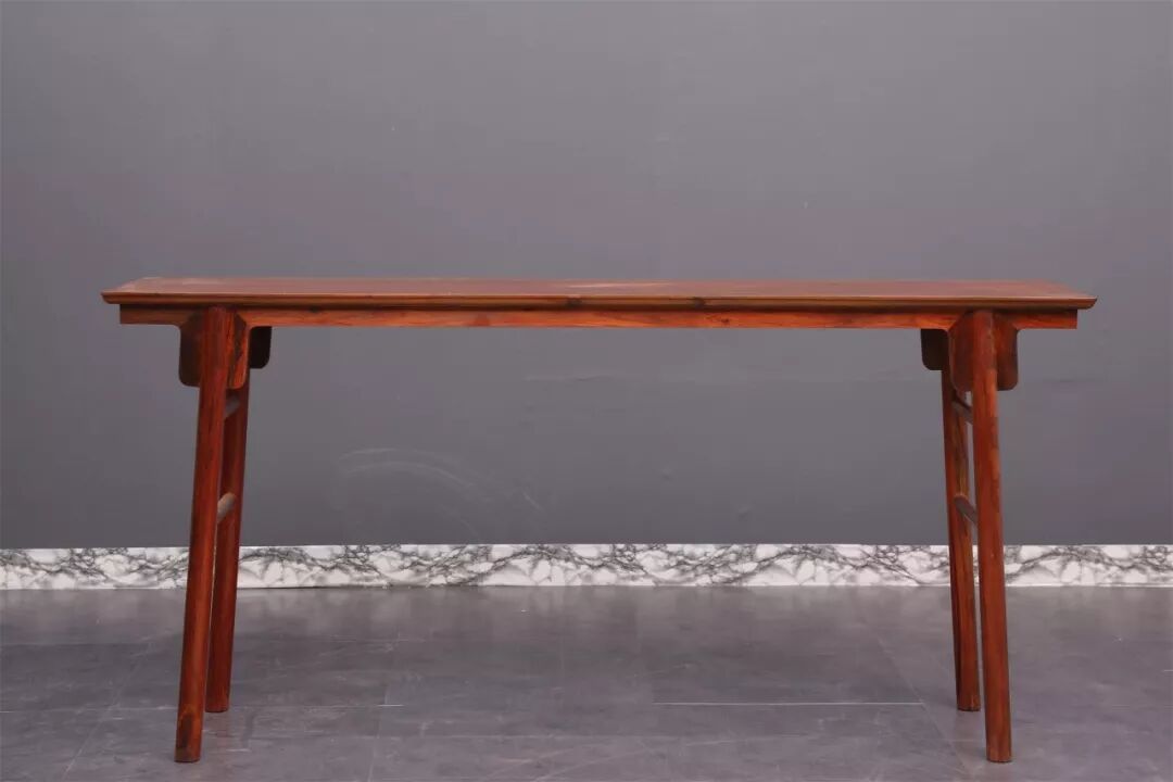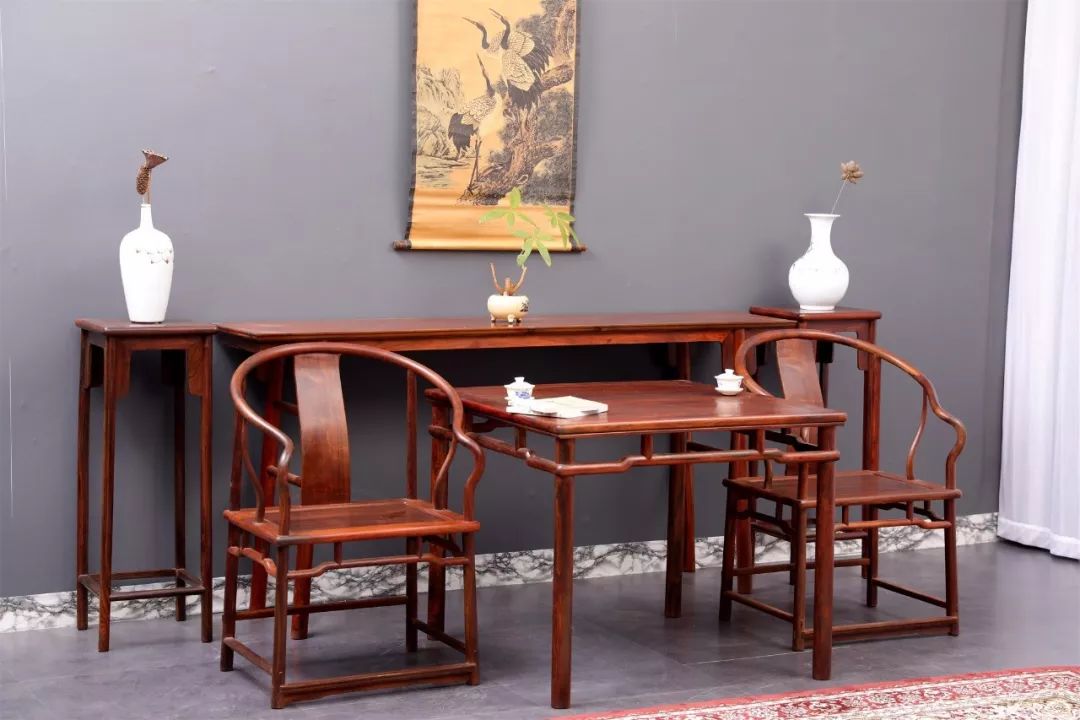中堂家具在诸多红木古典家具消费中,极少成批生产,门店销售达成率偏低,多通过询价和订制完成。这是因为堂屋会客、行礼仪和佛堂的功能,决定着中堂家具日常的使用效率实际并不高,陈设其中的中堂家具跟“王谢堂前燕”一般,无法成为普通人家的必用品而“飞入寻常百姓家”,可是另一方面,作为从古至今大户人家的必需品,登堂入室的中堂家具,并不因使用者稀少,而降低它自身作为家具重器的要求。因为中堂家具属家居系列的高配置,构件多,体裁大,导致中堂家具选材用料的要求特别全面。耗材用料多,用料大,各构件纹理色泽的搭配极其讲究,组合后即要符合整体体量的外观要求,还能满足各构件单独使用的功能诉求,简而言之就是:既协调又统一。
