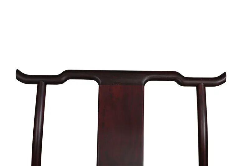 直线形搭脑为最简洁的搭脑形式,因为直线具有稳定、有序的形态特点,无论搭脑出头与否,转角方式如何,都绝对符合纵向中轴对称,简洁而庄重。
