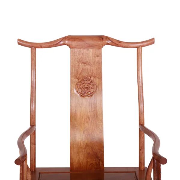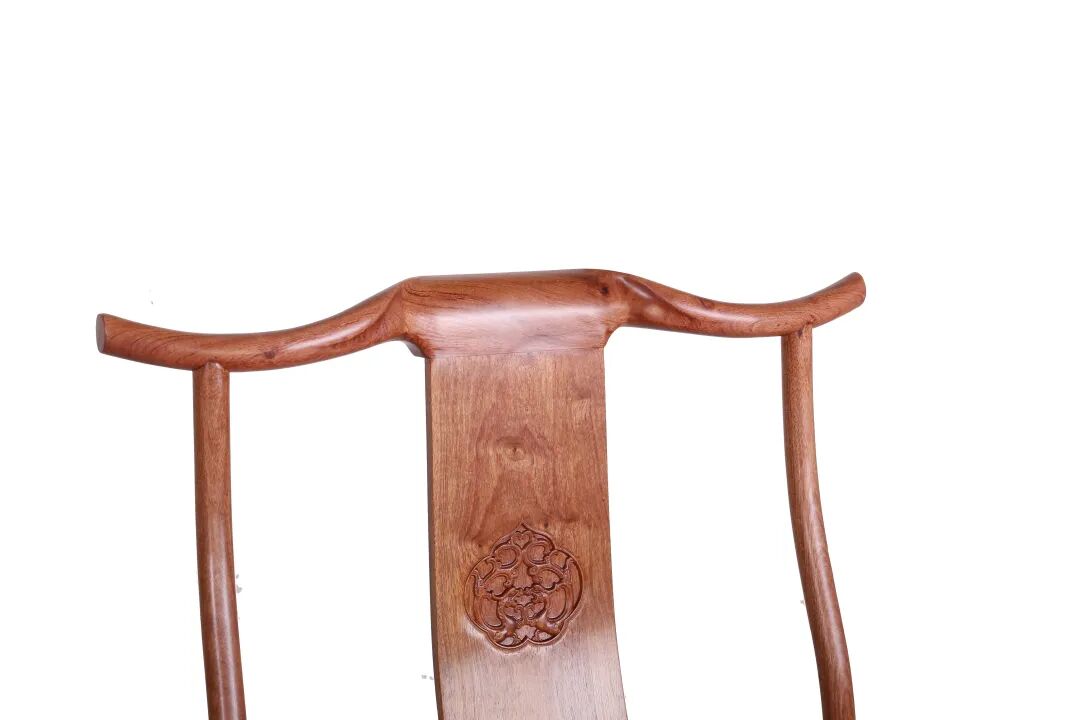 弓形搭脑是指搭脑中部突起的枕状,似弓形。线条流畅的弓形搭脑形态,简洁而富有变化。不出头弓形搭脑与背板相接处搭脑为直线形,且突起处明显比两端粗实。