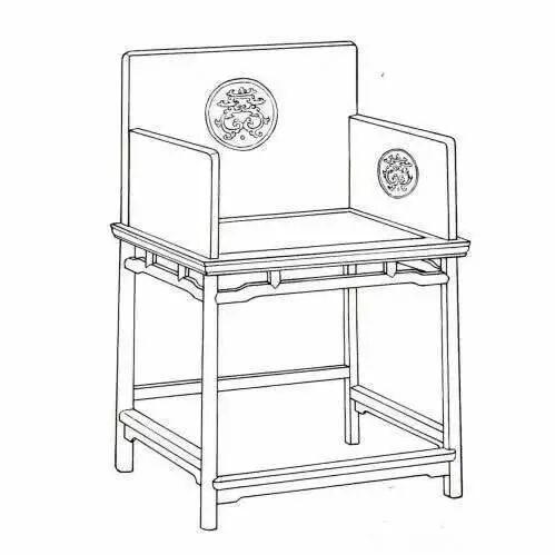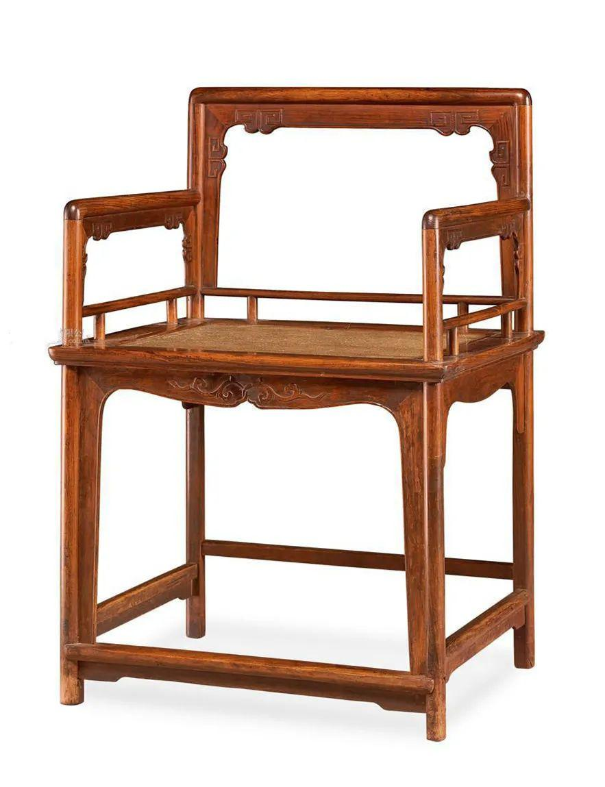 玫瑰椅靠背和扶手都比较低矮,且靠背、扶手、椅面之间相互垂直。它多选用直材,尺寸较小,形态方正而精巧。