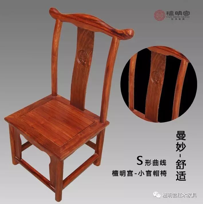 然而,不管是南官或是北官,它们在椅靠上的设计都有异曲同工之妙,都是将正中的靠背做成“S”型弧线。这种造型符合人体比例,与人的脊椎曲线形似,靠上去非常舒服。