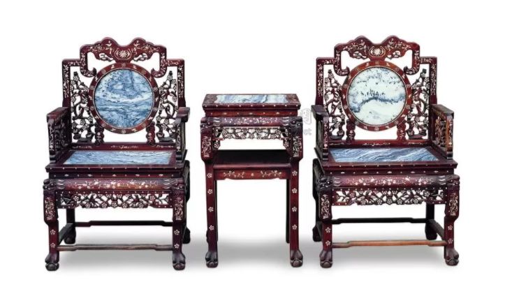 清代园林和大户人家厅堂上使用的扶手椅,江南俗称“独座”是借鉴宫廷“宝座”制作出来,椅子尺寸较大,有气魄,并常雕刻云纹,灵芝纹等,一般靠背镶嵌云石,是江南一带别具一格的座椅。
