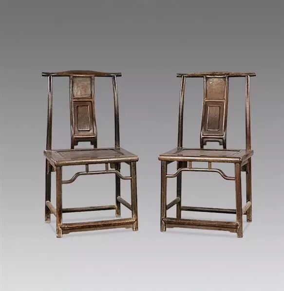 北官帽椅:靠背椅子的搭脑两端、左右扶手的前端出头,其背板多为“S”型,而且多用一块整版制成。