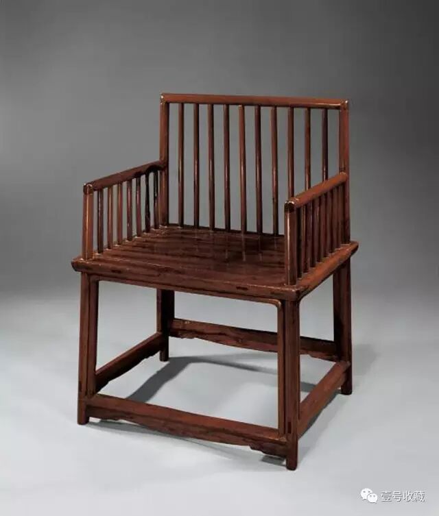 椅背较低、背高度与扶手高度,相差无几。扶手、靠背与腿子,圆棍形居多。靠背无侧脚,直立于座面。
