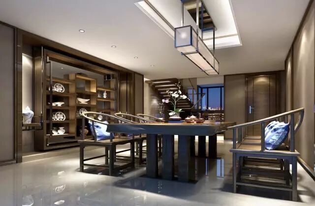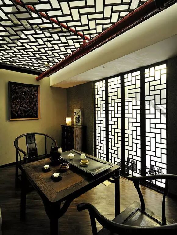 中式茶室的装修讲究一种韵味,从传统茶文化的出发,烘托茶韵。中式风格一种“此时无声胜有声”的意境,无论是木质的色彩还是中式流畅的线条,都给人一种宁静致远的感觉,简洁淡雅!