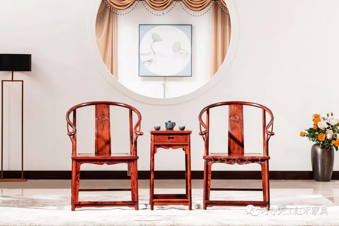 圈椅一般与茶几、八仙桌配套使用。只要空间放得下,一对圈椅,一个茶几,便自成一方天地。