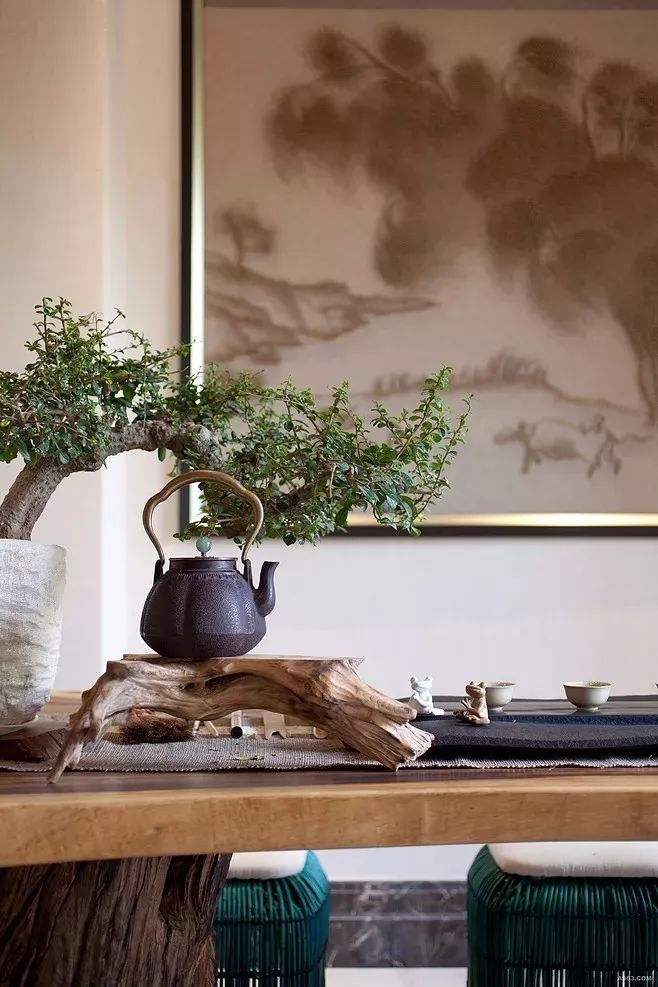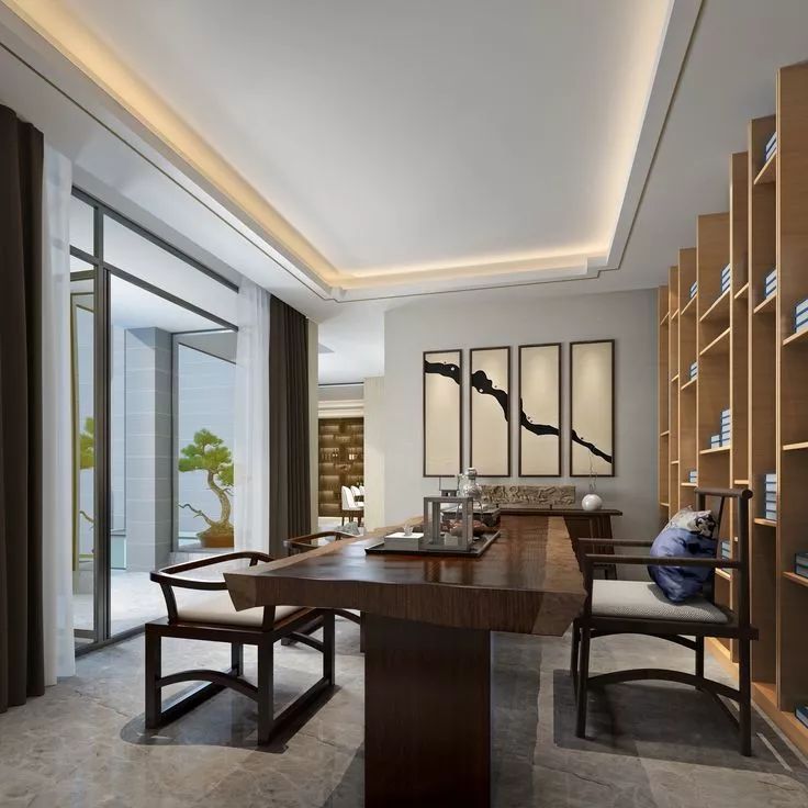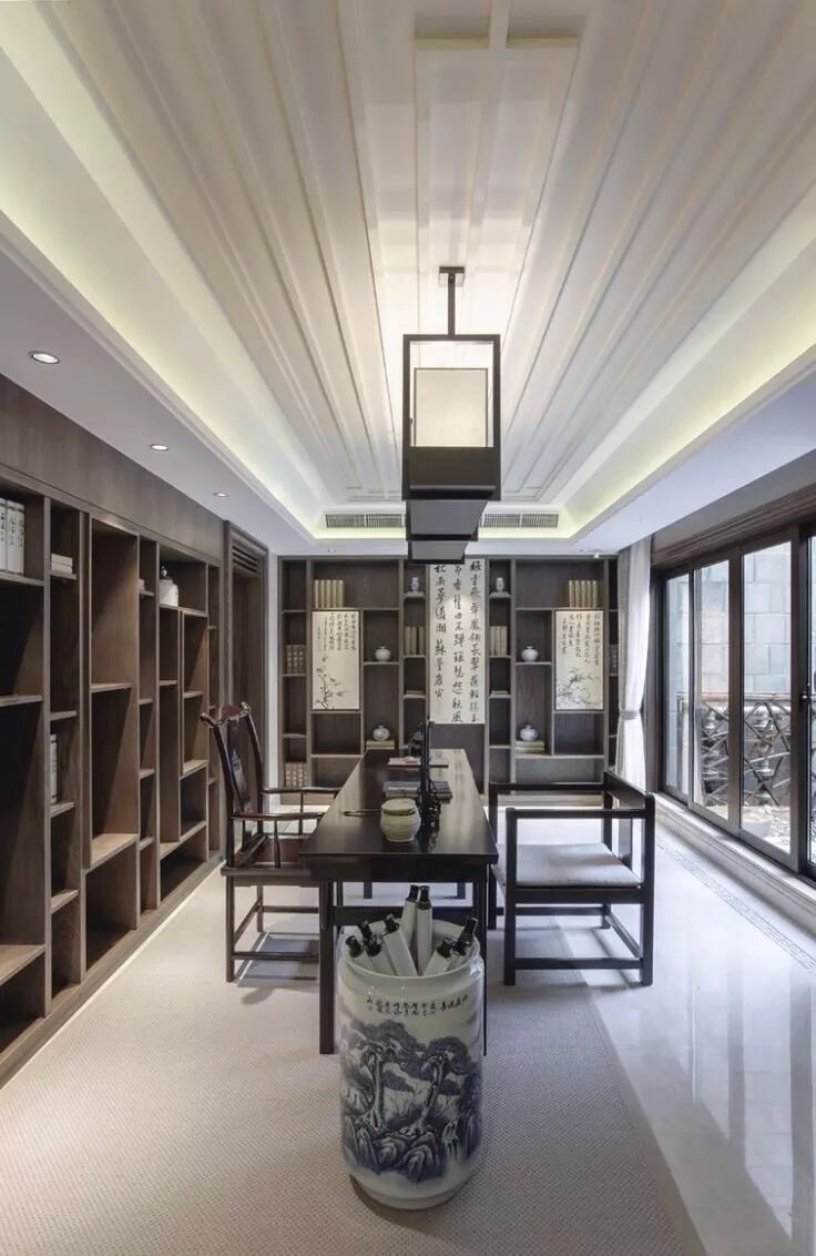 当书房和茶相遇,是源于千年骨血的相契相合,让传统文化在现代社会里得以优雅互存,散发出浓浓的生活气息。读书与品茶对环境的要求又极其相似,那么在茶室中组合书房能更好地利用空间。
