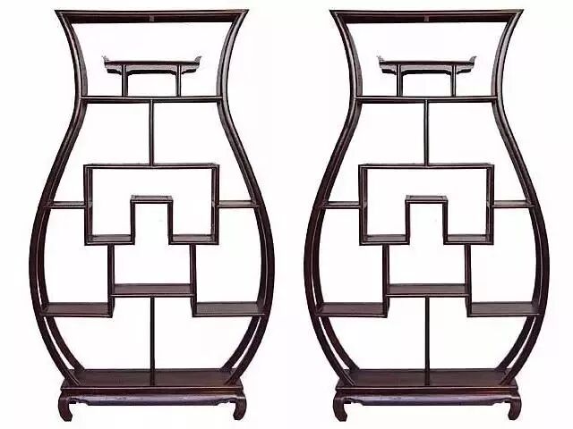 其中具象形多宝格比较代表性形式有:葫芦形、花瓶形、寿桃型、梅花形、弯月形、扇形、太极形、茶壶型、汽车形等。