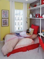 儿童房采用博古架,可以收纳孩子的学习用品,摆放小孩子的学习用具、玩具等等都可以,对小件物品的收纳,减少了空间的凌乱,增强了室内的整洁度。