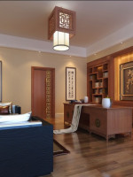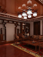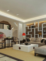 中式一般离不开木,在中国人观念了中式的房子装修,离不开木材。这与中国历史房子建筑的材料有关。以前房子建造都是采用木材,给中颜色的木材都有,且带有浓浓的自然气息。中式博古架在客厅背景墙旁边做衬托,使得空间协调不至于单调。