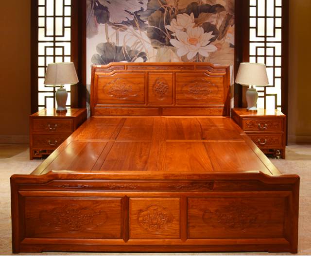 正如装饰画提升了人居空间的艺术人文气息,增加了空间的生机活力,其实红木床布置于卧房,便是起到了锦上添花的效果。红木床一般会有古典气息,加之会有不同的雕刻题材,使其具有浓厚的文化韵味。
