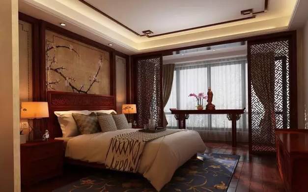 要提升睡眠质量,还可以通过装饰画的点缀,来提升卧房空间的艺术文化气息。现在的中式家居空间对装饰画的运用形式比较多样化,比如绢画、挂画、还有墙布等。