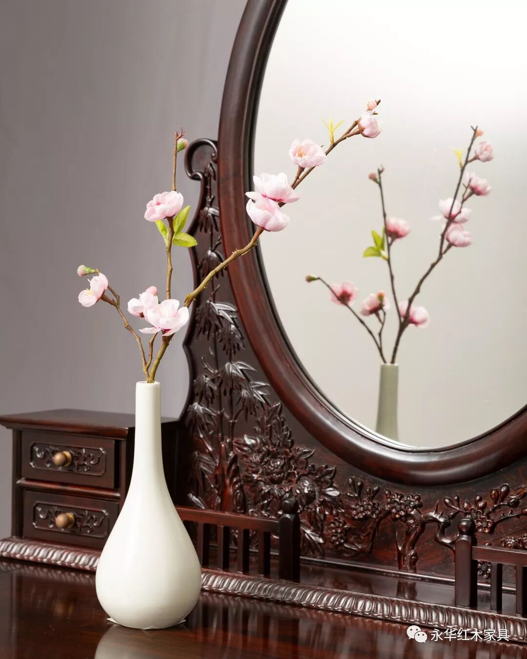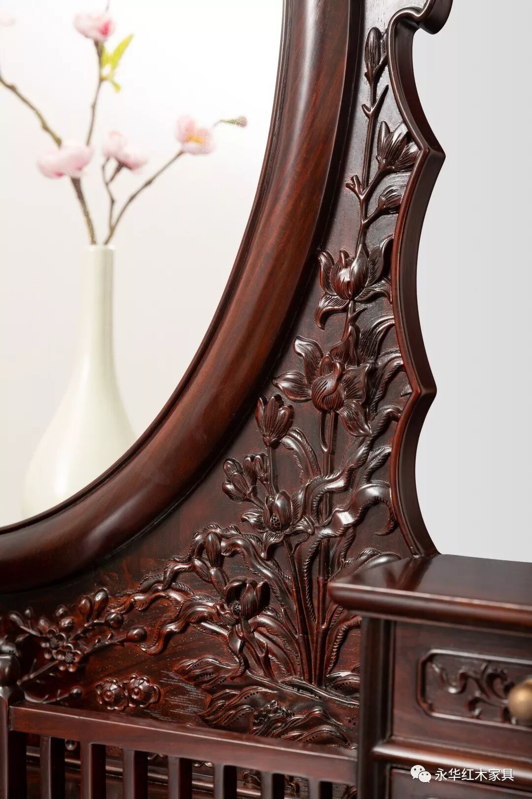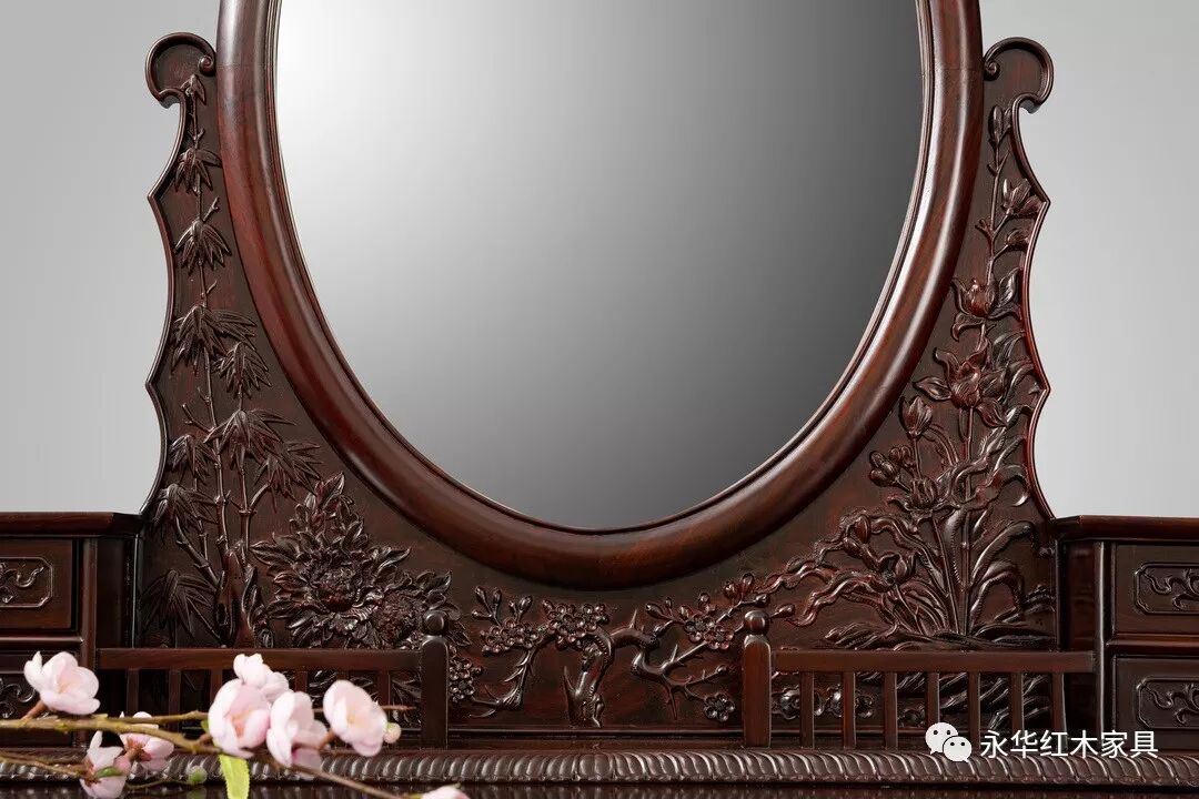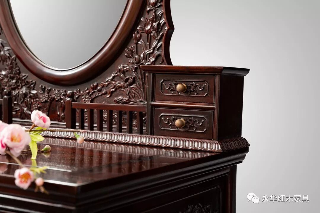 红木梳妆台不仅是一件实用家具,也成为了一种精致生活的装饰物。在卧室里,最具旖旎风光的也自然是它,而最能寄托遐思的也是它。