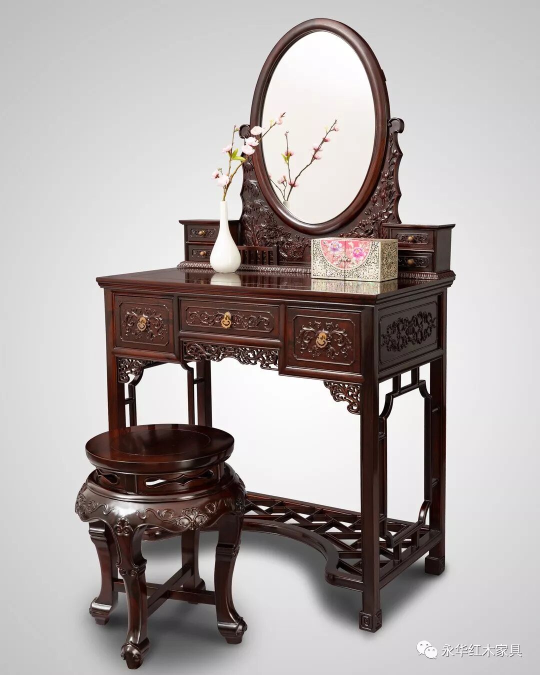 红木梳妆台,儒雅大方,提升卧室的格调,更彰显了你的气质和品位,也为你的闺中生活带来轻松浪漫的情趣,你的魅力,也将因红木梳妆的精致而更加炫彩!