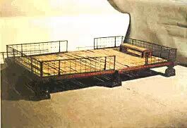 床下有一木制平台,正面伸出床沿,平台四角立柱,并镶以木制围栏,使床前形成一个浅廊,中间为床的门户,两侧可放置小型家具及杂物。