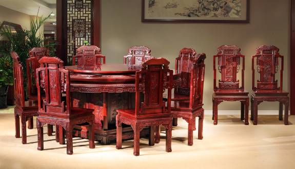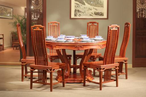 红木餐桌既环保又健康,且具有浓郁的自然气息,而且红木餐桌都经过精雕细琢,工艺精湛,不仅牢固而且美观。
