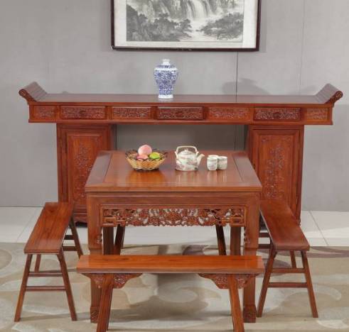 八仙桌由来与八仙有关。话说那年玉皇大帝做寿宴请各处神仙,八仙欣然赴宴,虽然可腾云驾雾速达,但因留恋人间美景,于是优哉游哉。一天到了一处名山,只见古木参天、奇花飘香、百鸟和鸣、流泉叮咚、彩云缭绕,张果老建议小憩,八仙各显神通变出石桌、石凳、香茗、鲜果等,品茗赏景,此石桌因八仙用过,就叫八仙桌,人们追求吉祥就称食饭桌为八仙桌。