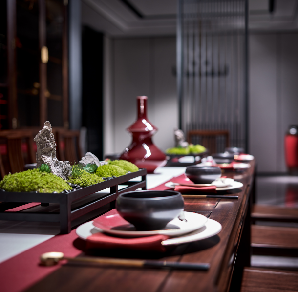 木,经过数百年才能成材,经过时间沉淀的木,拥有了独特的味道和实用性,它是高阶人士格调之选。气派的红木餐桌上,一块桌布、一件饰品,或是一束简单的花束就能轻松营造出高雅的用餐格调,让仪式感顿时倍增。