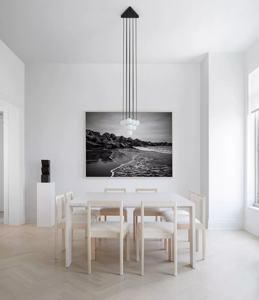 在日常生活中,长方形的餐桌布局非常常见,干净利落的线条简单却存在感十足,若您户型是狭长型的餐厅,非常适合选择长方形的餐桌。